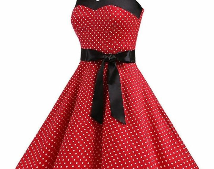 Get ready to turn heads with the FYMNSI Women's Vintage Dress! This retro-inspired party dress features a halterneck design and pleated skirt. Made from comfortable polyester and spandex. Perfect for any occasion. Add vintage charm to your wardrobe now!
